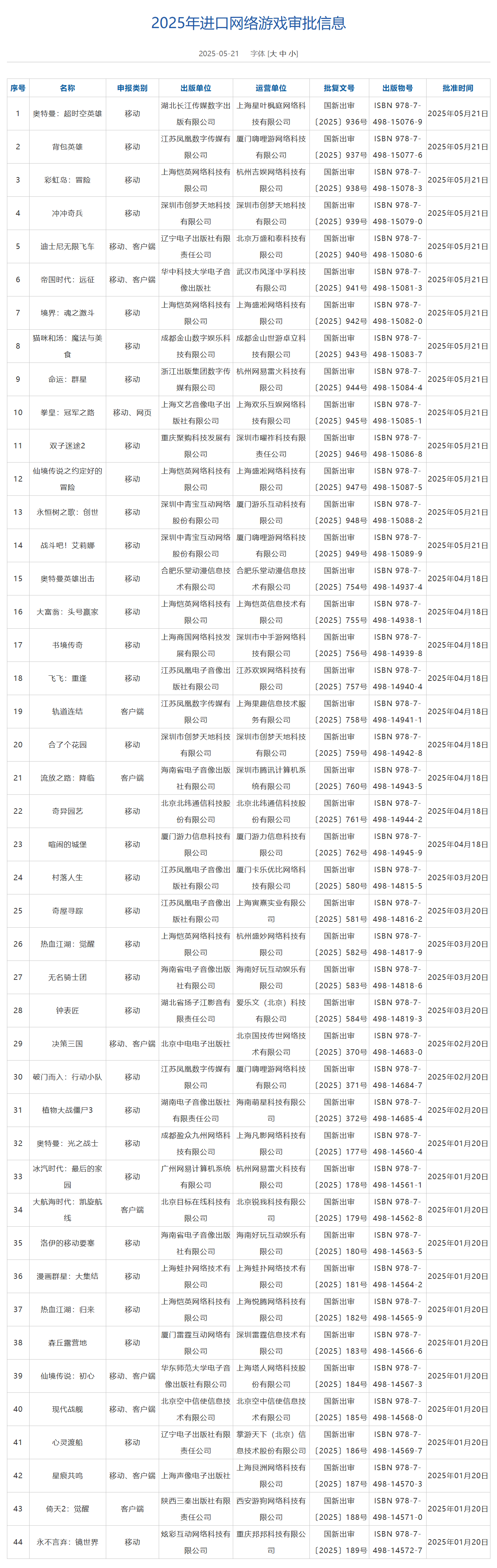 113 05-27 19:05国家新闻出版署:5月共14款进口游戏获批