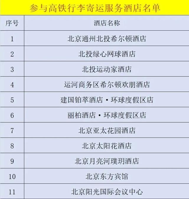 副中心新增高铁行李寄运宠客服务——在北京通州北投希尔顿酒店、太阳花酒店、北投绿心网球酒店等区内11家重点酒店放置中铁快运二维码,行李将准时、安全地送达车站,让游客轻松启程。