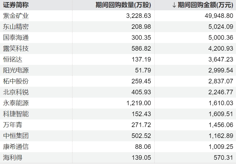 21 04-14 07:5716家上市公司股票获回购,紫金矿业回购金额最高