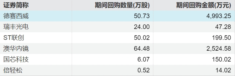 0 04-30 07:576家上市公司股票获回购,德赛西威回购金额最高
